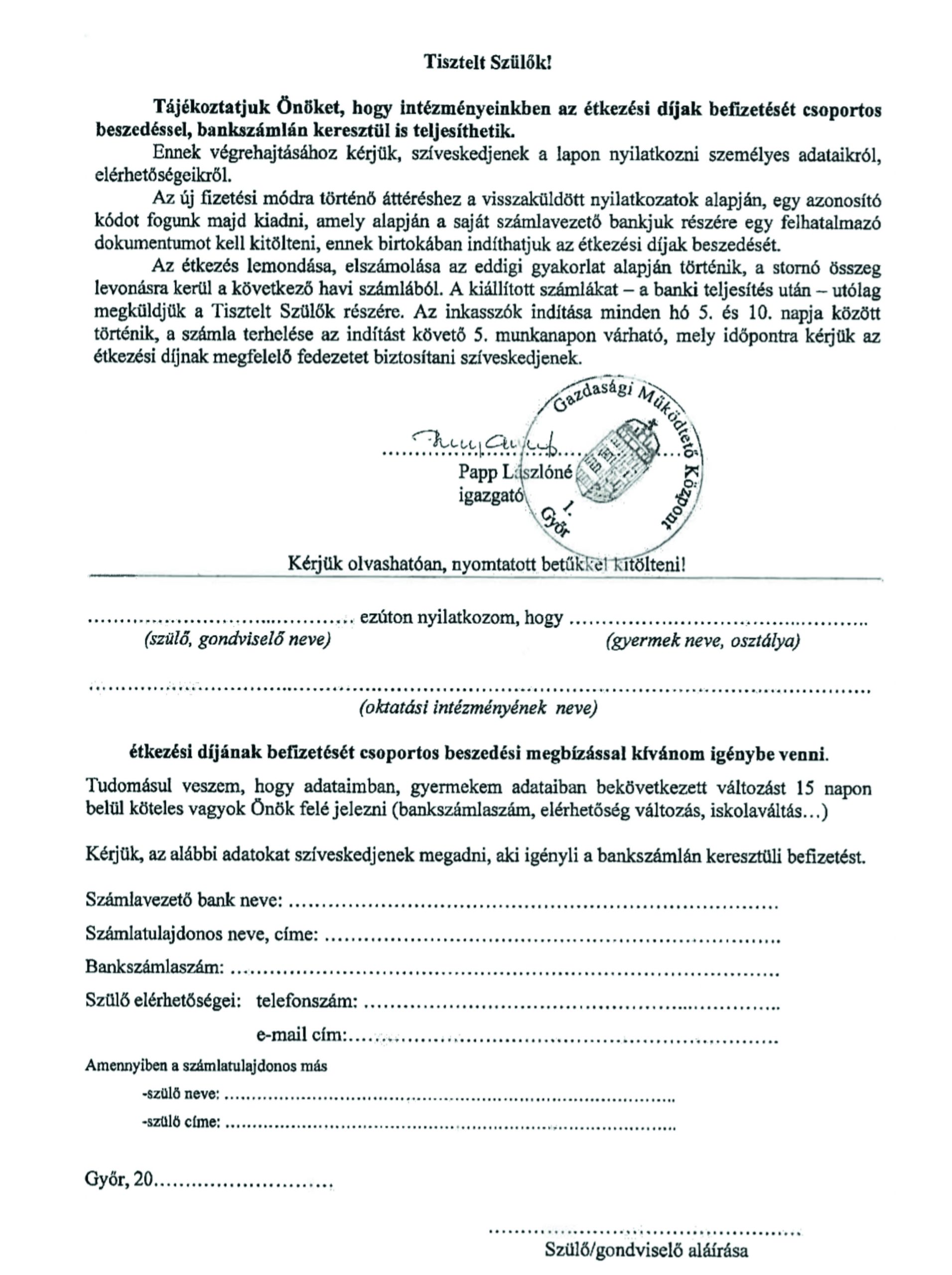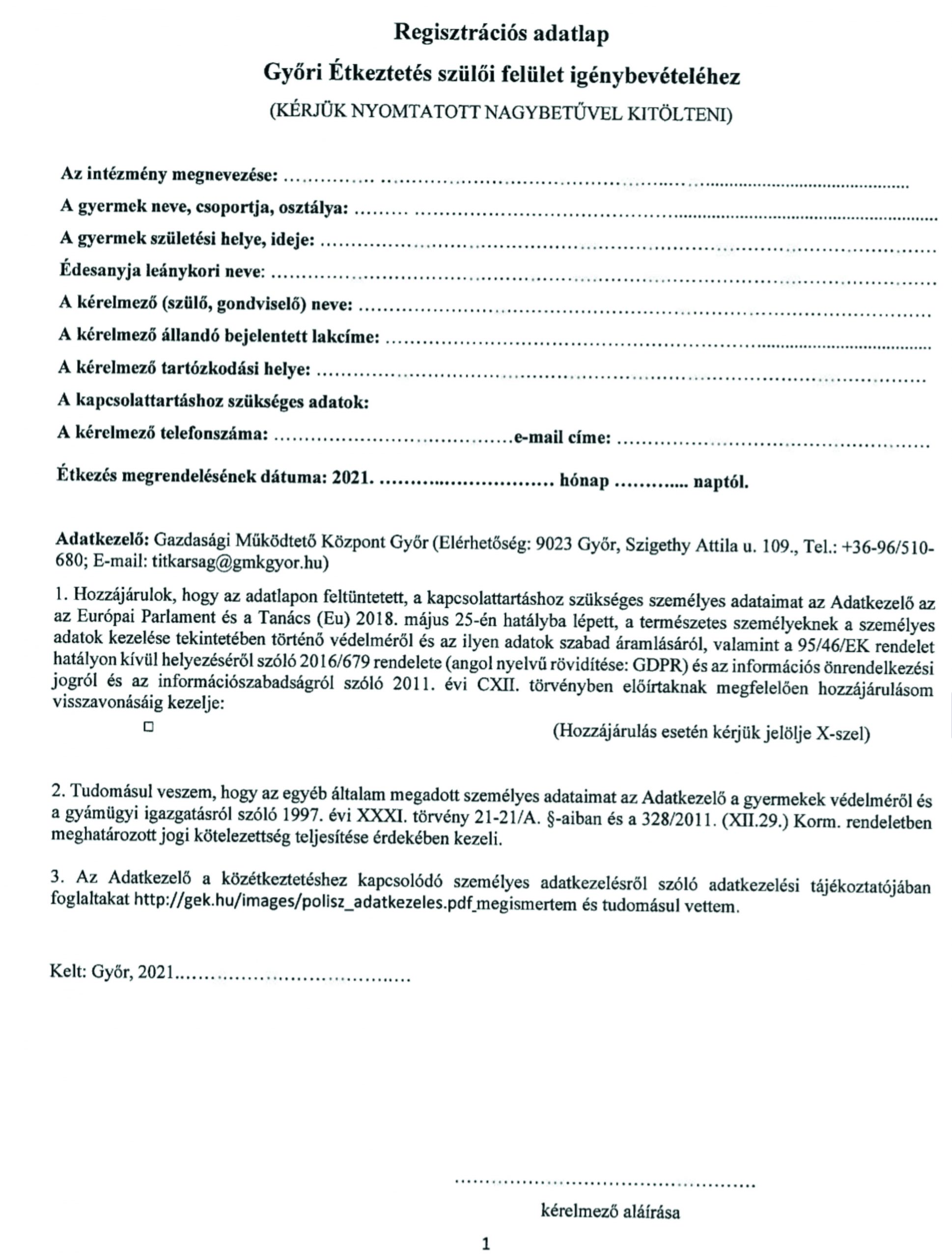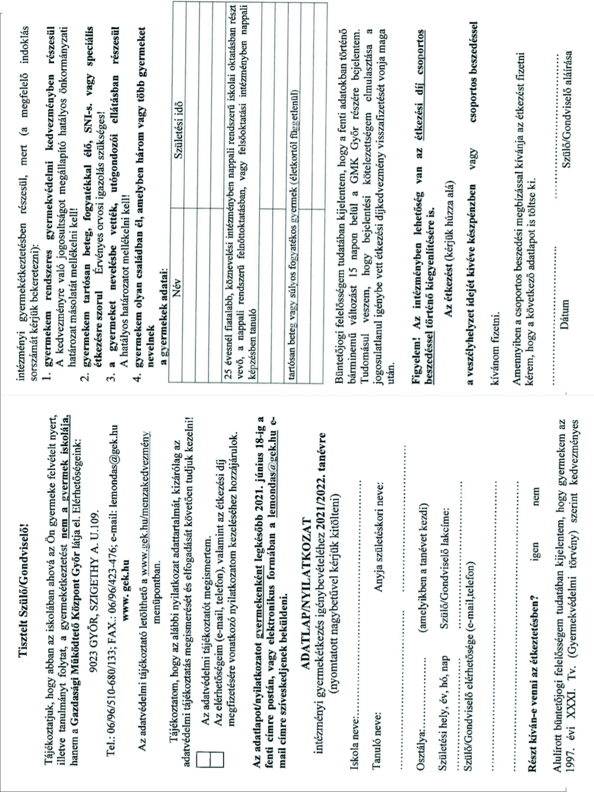 2021.05.29.A nyári szünettel kapcsolatos étkezési lehetőség, napközi ügyelet igénylése és a jövő tanévi intézményi gyermekétkeztetés igénybevételéhez szükséges adatlapok, nyilatkozatok: