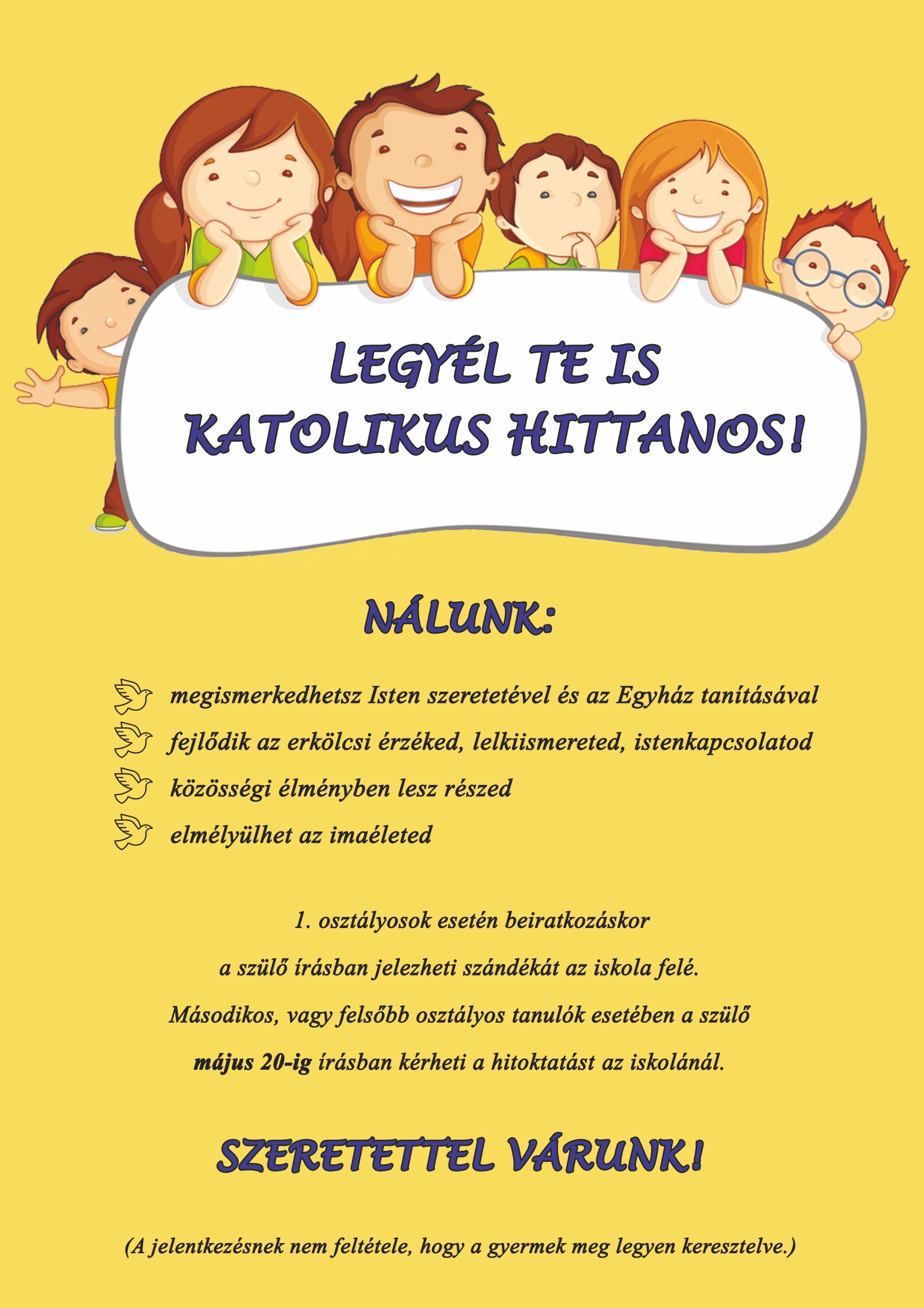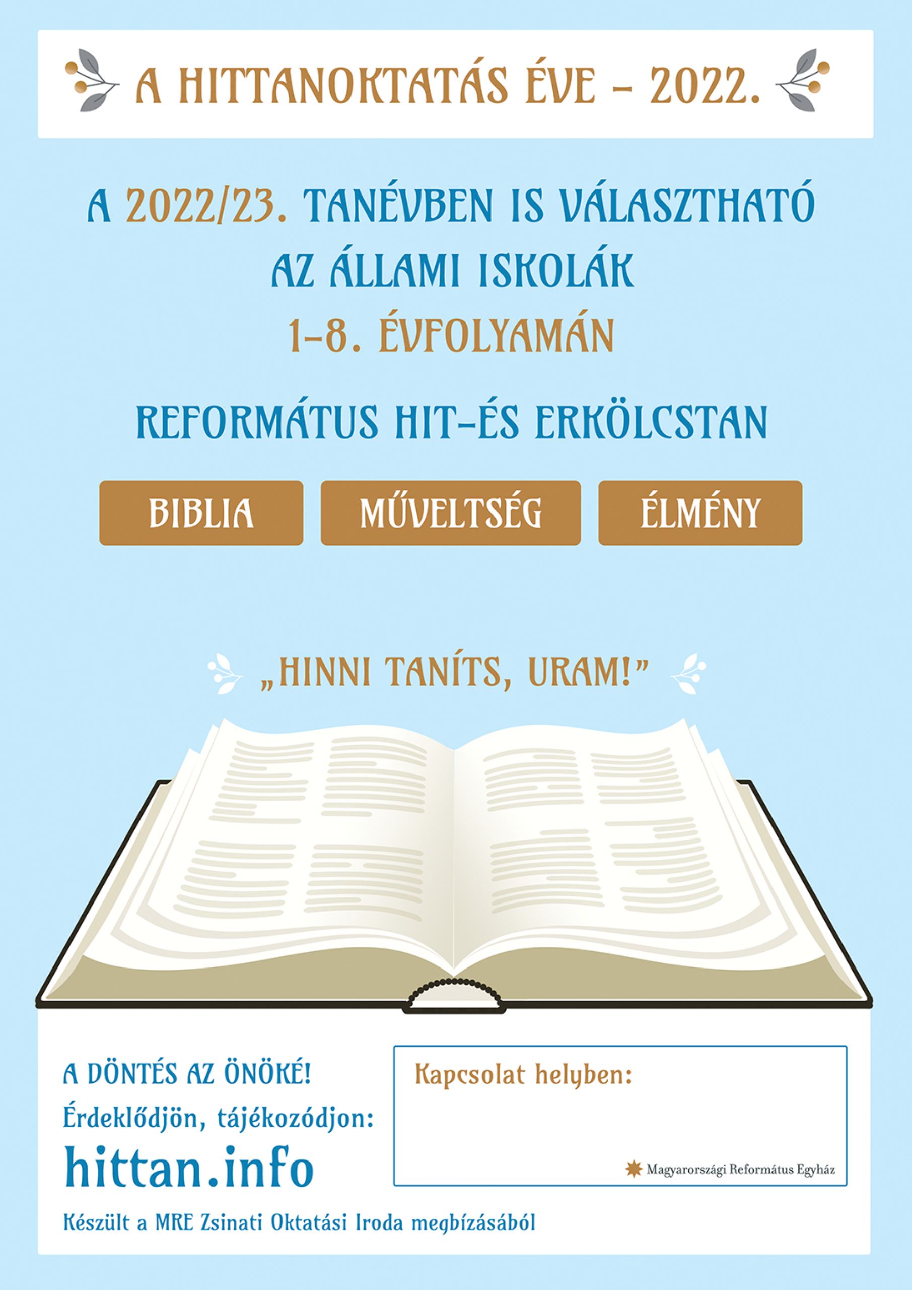 Az iskolai hit- és erkölcstan oktatásról szülői tájékoztatót a következő tanévre – leendő első osztályosok számára – a mellékelt írásos anyagban, illetve telefonon tartanak az alábbi egyházak képviselői: