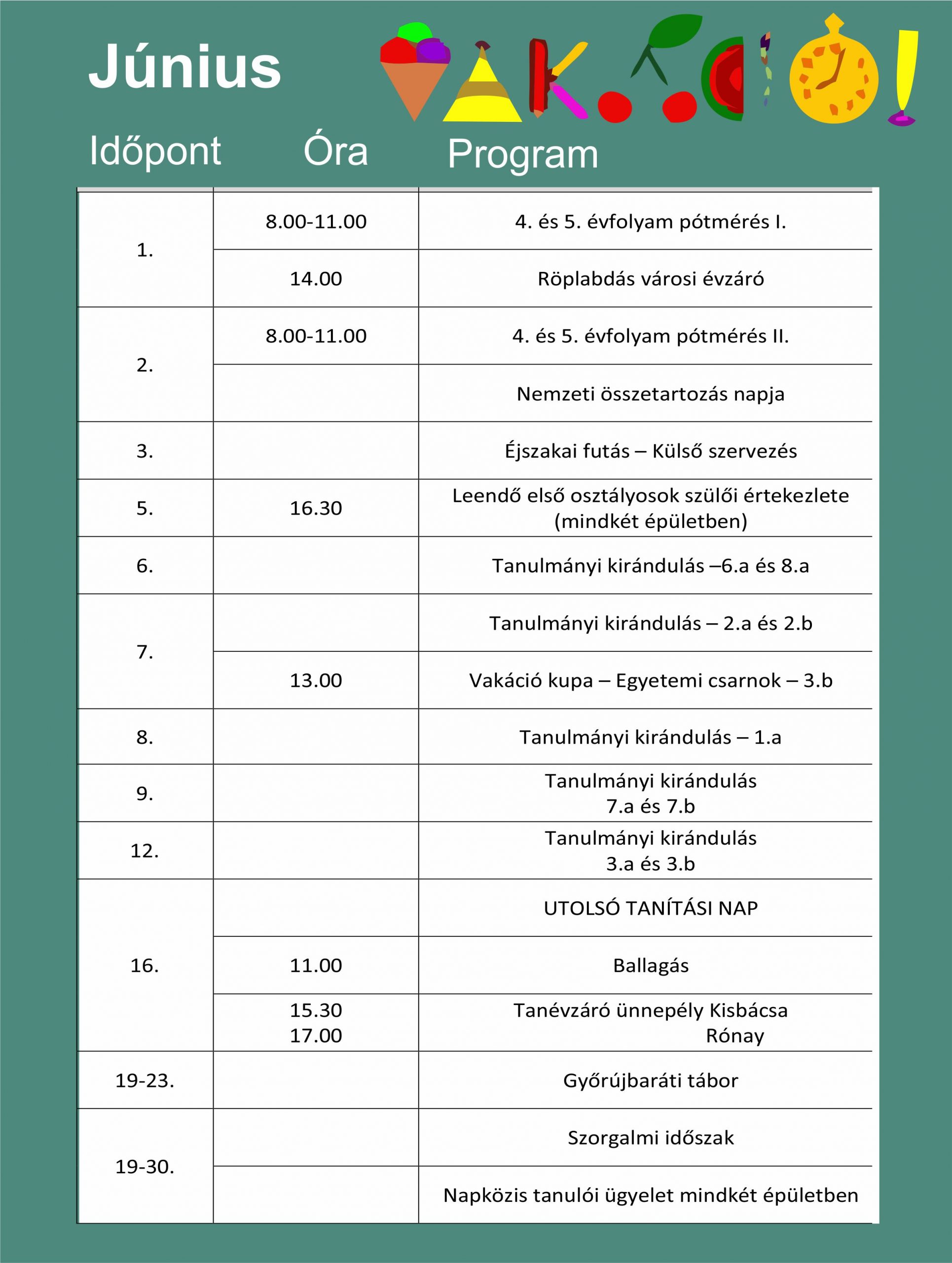 Júniusi programok, rendezvények intézményünkben: