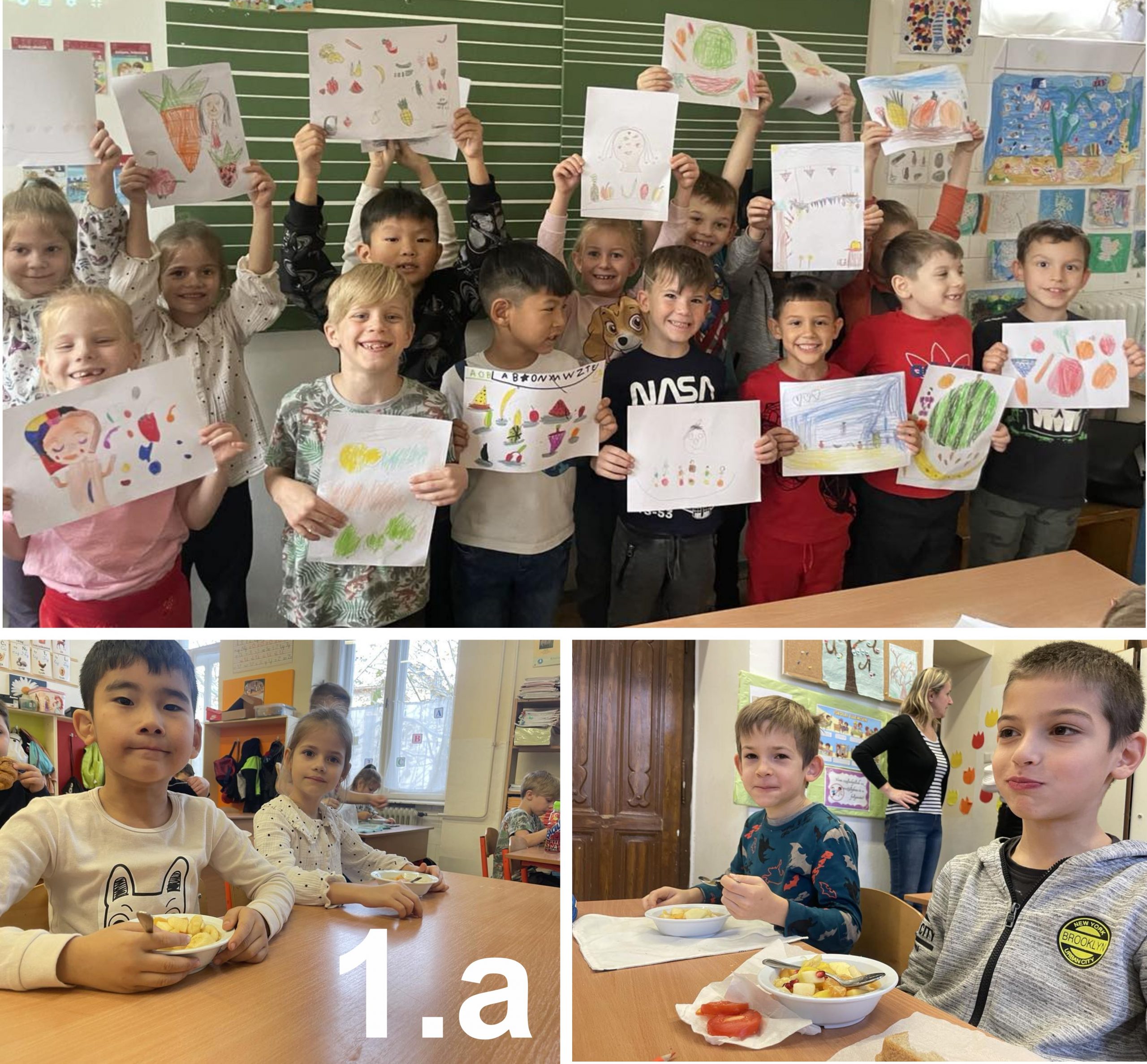 Az alsósok játékosan sajátították el az egészséges étkezés alapjait, amit egy gyümölcssaláta közös elkészítése és elfogyasztása zárt le.