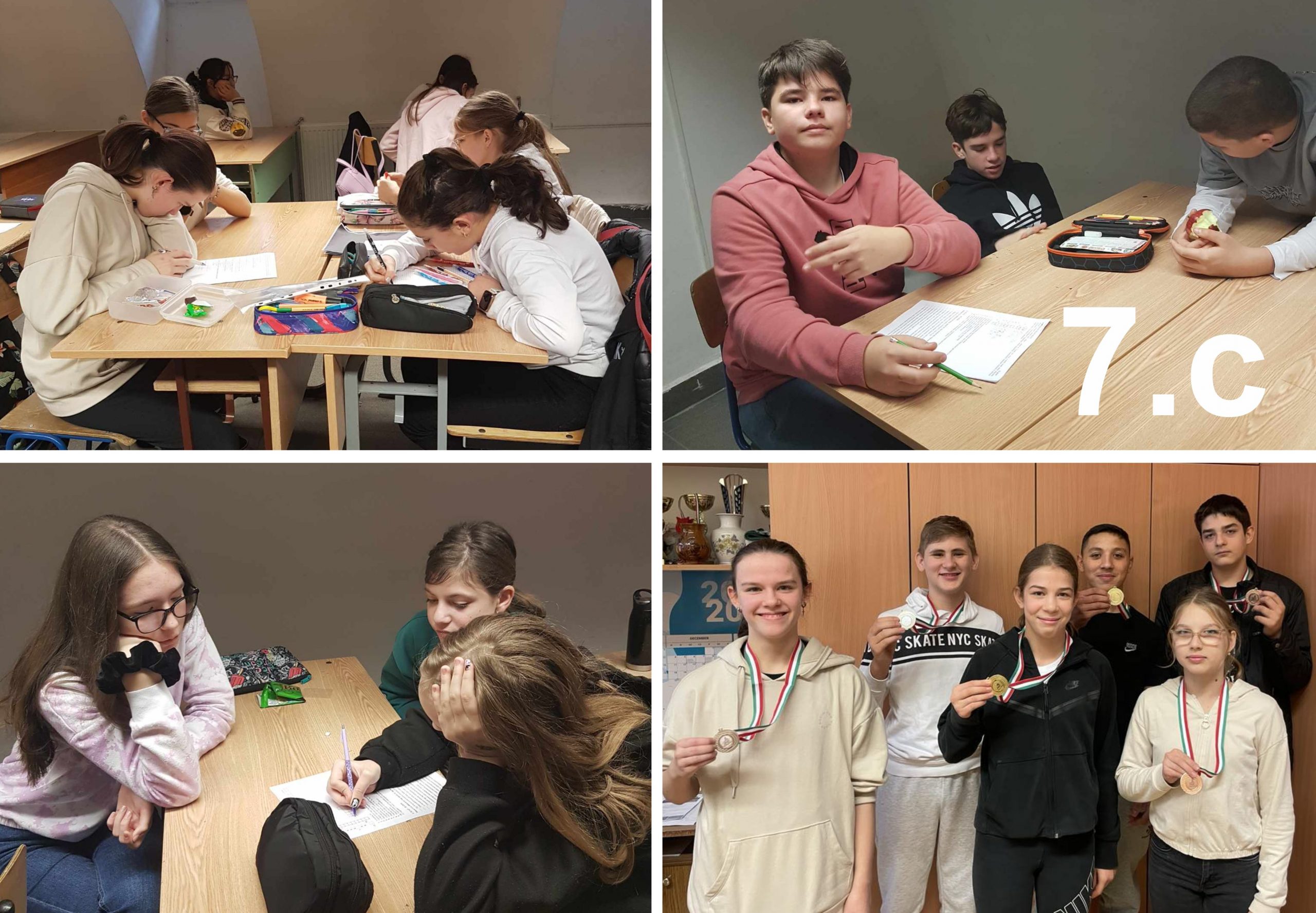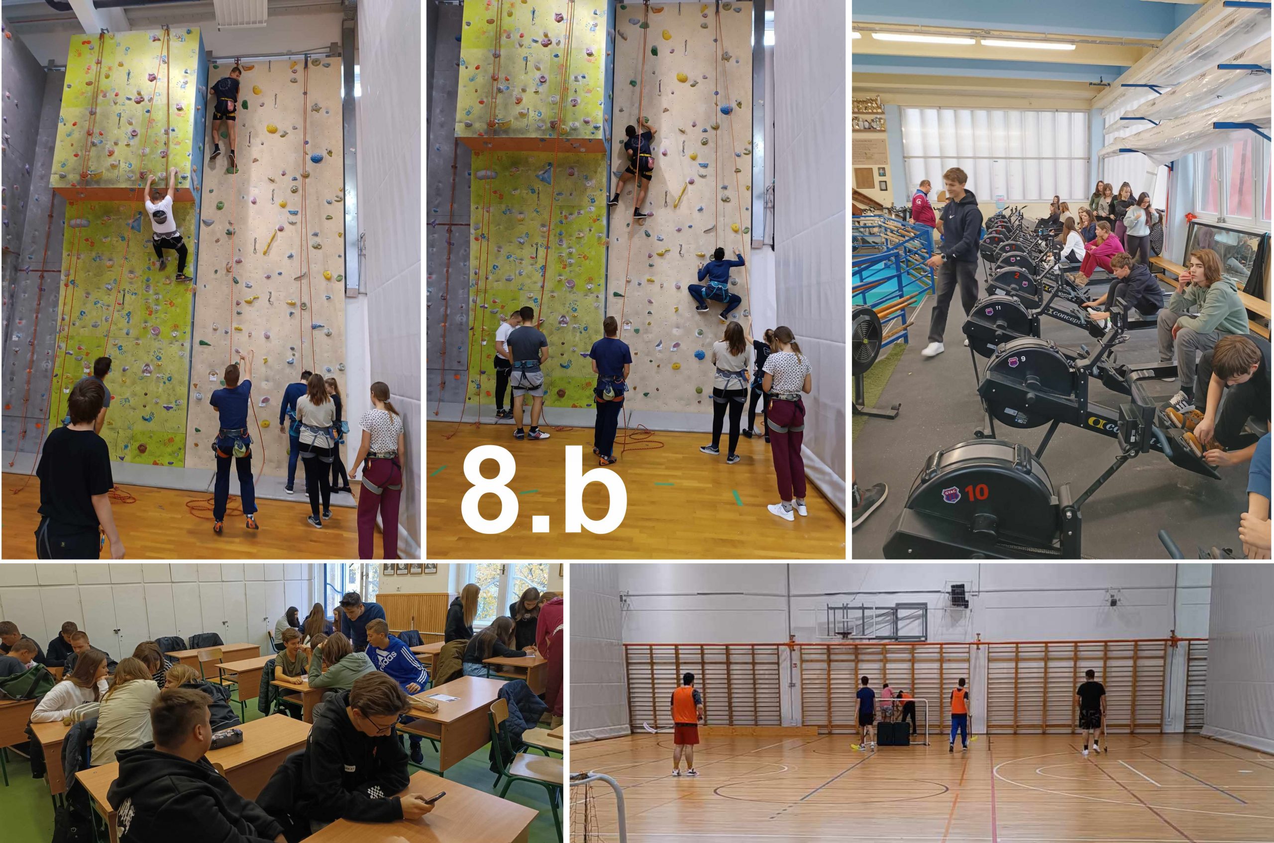 A sportolás pozitív hatásainak megismerésére a felső tagozatosok kipróbálhatták a falmászást, valamint ellátogathattak az evezős telepre, ahol évfolyamszintű ergométer versenyen vehettek részt. A képen a 7. osztály helyezettjeit láthatják!