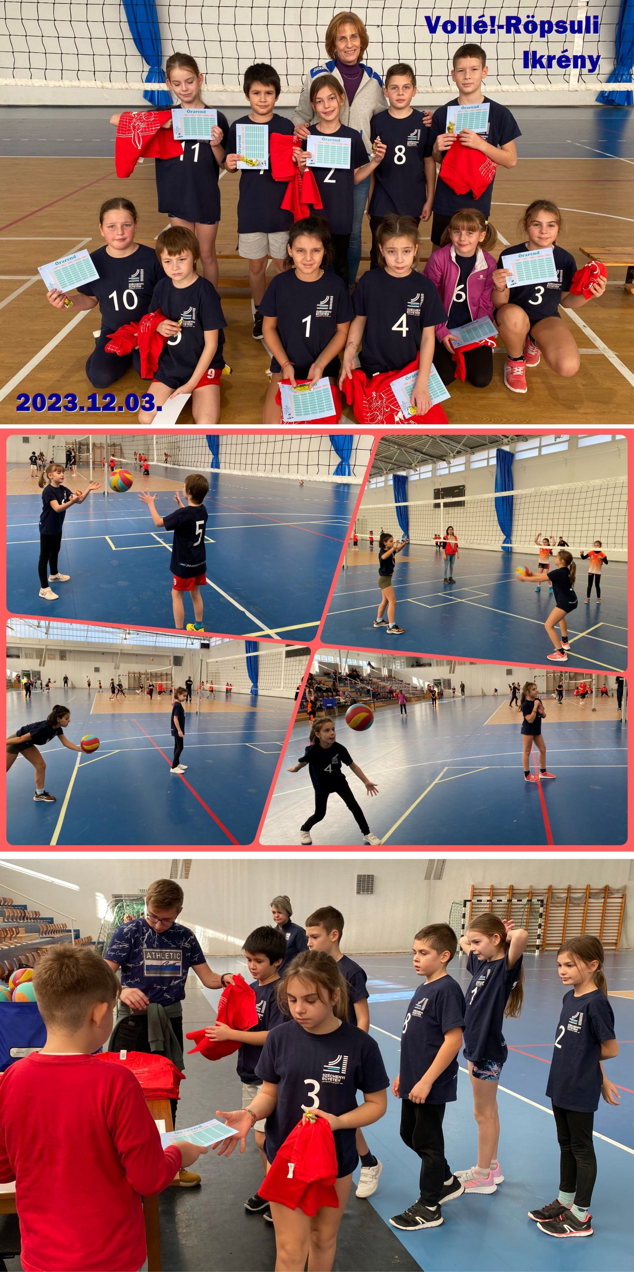 2023.12.04.A hétvégén – 2023.12.03. – röplabdásaink az idei tanév első röplabda tornáján vettek részt Ikrényben, ahol a Vollé!-Röpsuli versenyen 1 Szupermini és 2 Manó csapattal indultak. 3. osztályosaink most először játszottak idegenben meccset, a legkisebbek pedig életük első mérkőzését játszották, de nagyon szépen helytálltak és rengeteget fejlődtek.