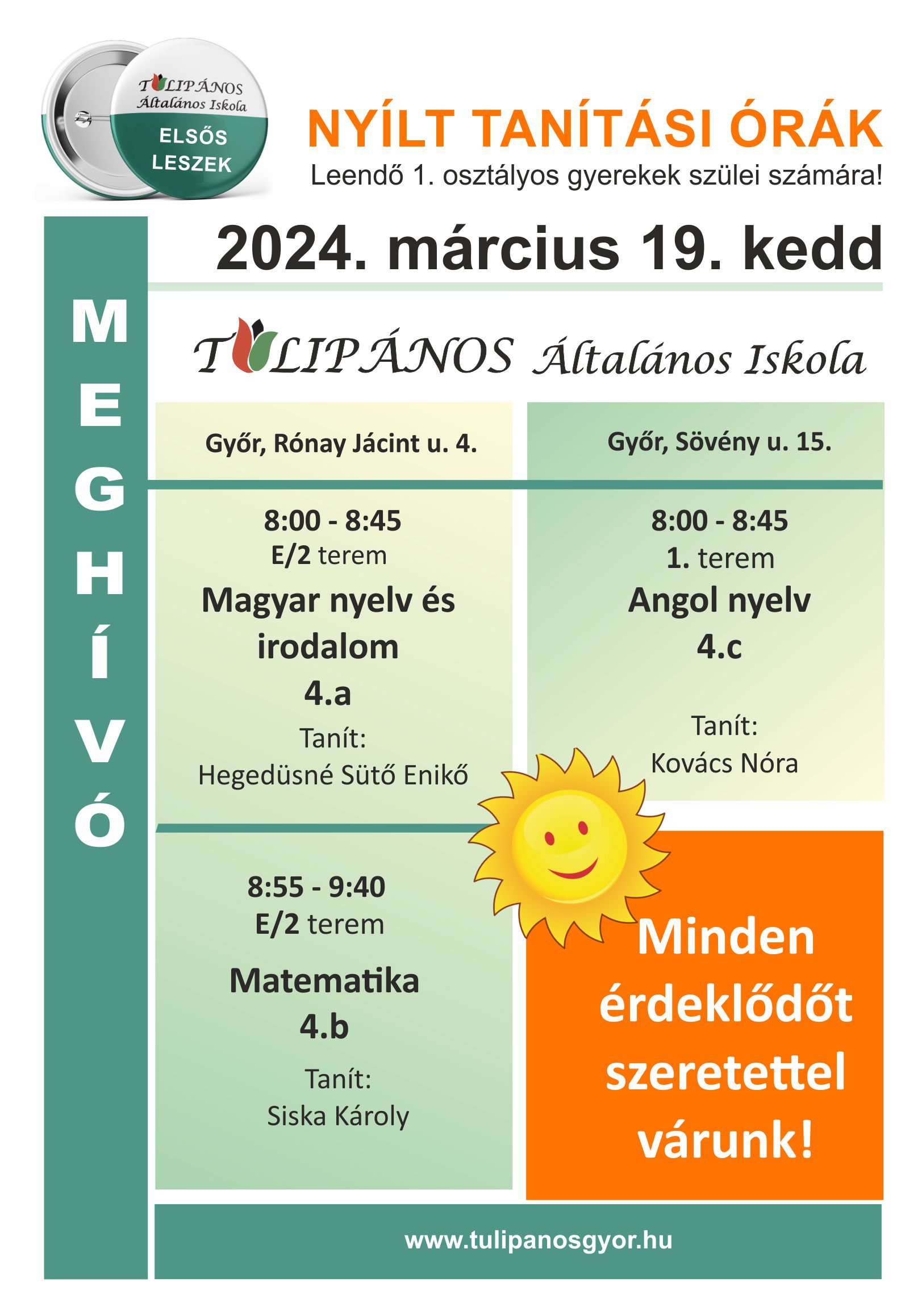 Leendő 1. osztályos gyerekek szüleit nyílt tanítási órákra várjuk!