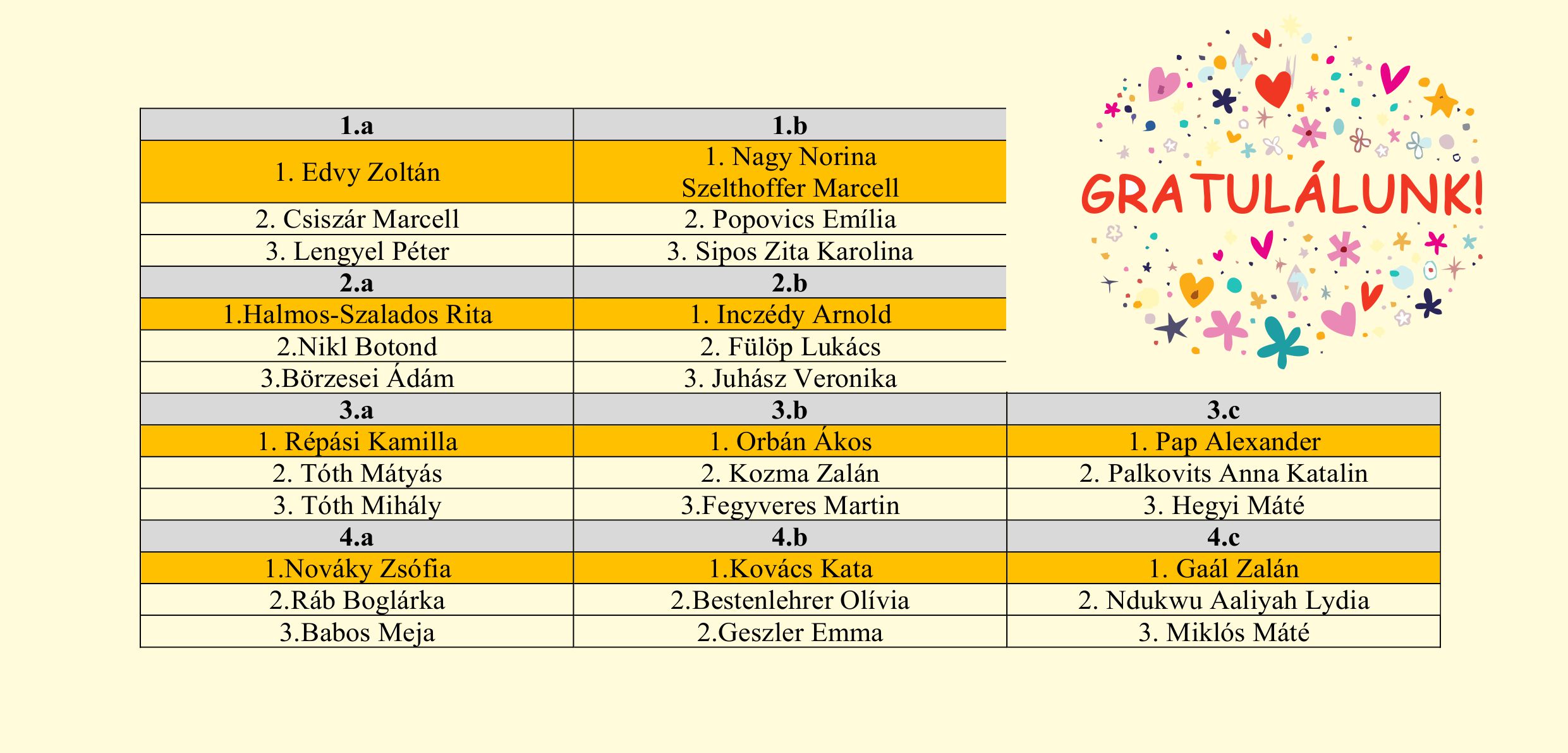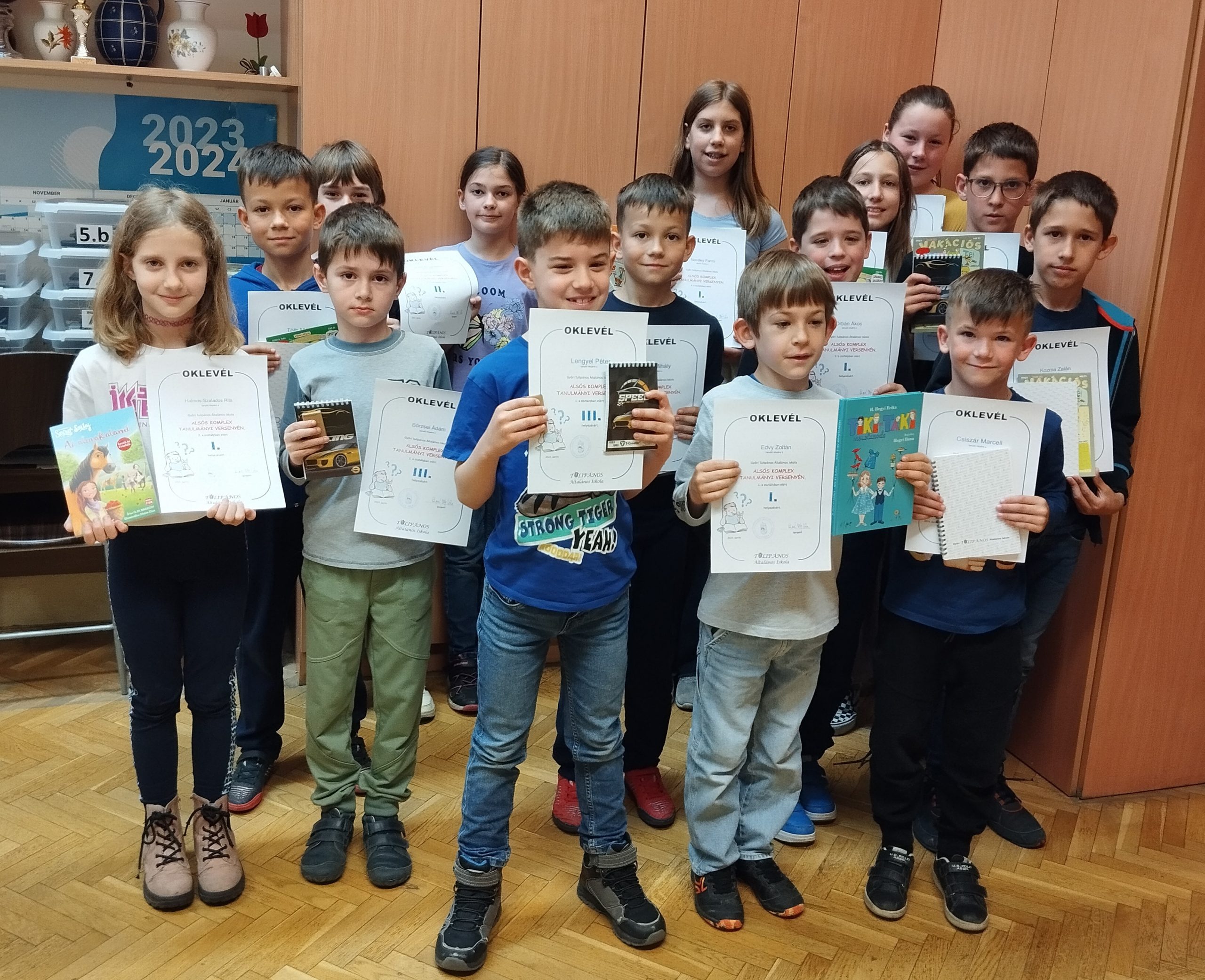 2024.05.19.Idén tavasszal ismét megrendeztük iskolánk alsó tagozatán a Komplex házi versenyt. Elsőtől negyedik osztályig minden gyermek megoldhatta az izgalmas -matematika, magyar és környezetismeret tantárgyakat magában foglaló- versenyfeladatokat. A lelkes munkának köszönhetően szép eredmények születtek. Minden osztály első három helyezett tanulója oklevelet és jutalmat vehetett át.
