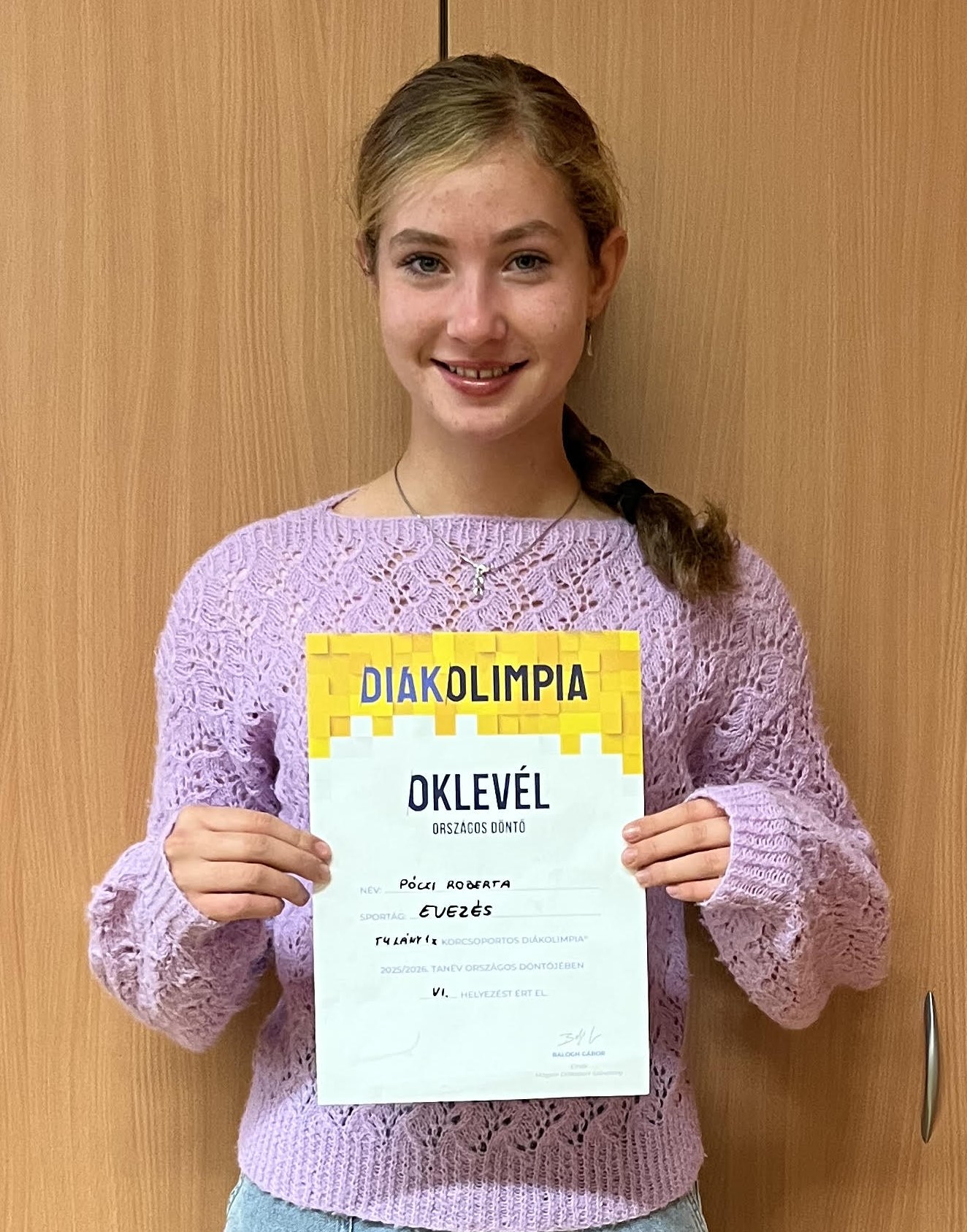 Póczi Roberta 8. a osztályos tanulónk az Evezős Diákolimpia országos döntőjében egypárevezős egyéni „A” kategóriában 6.helyezést ért el.